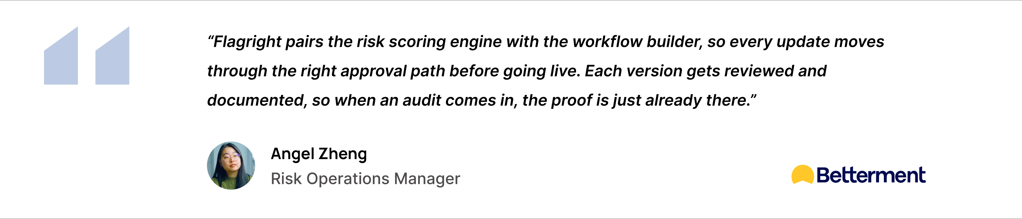During the selection process, Ryan noted that Flagright stood out not only for its product depth but also for the quality of collaboration during the rollout. The implementation followed a structured, predictable path that made it straightforward for Betterment’s engineers to integrate the platform alongside existing priorities. At the same time, the compliance team gained direct control over configuration and workflows, which reduced day-to-day reliance on engineering.