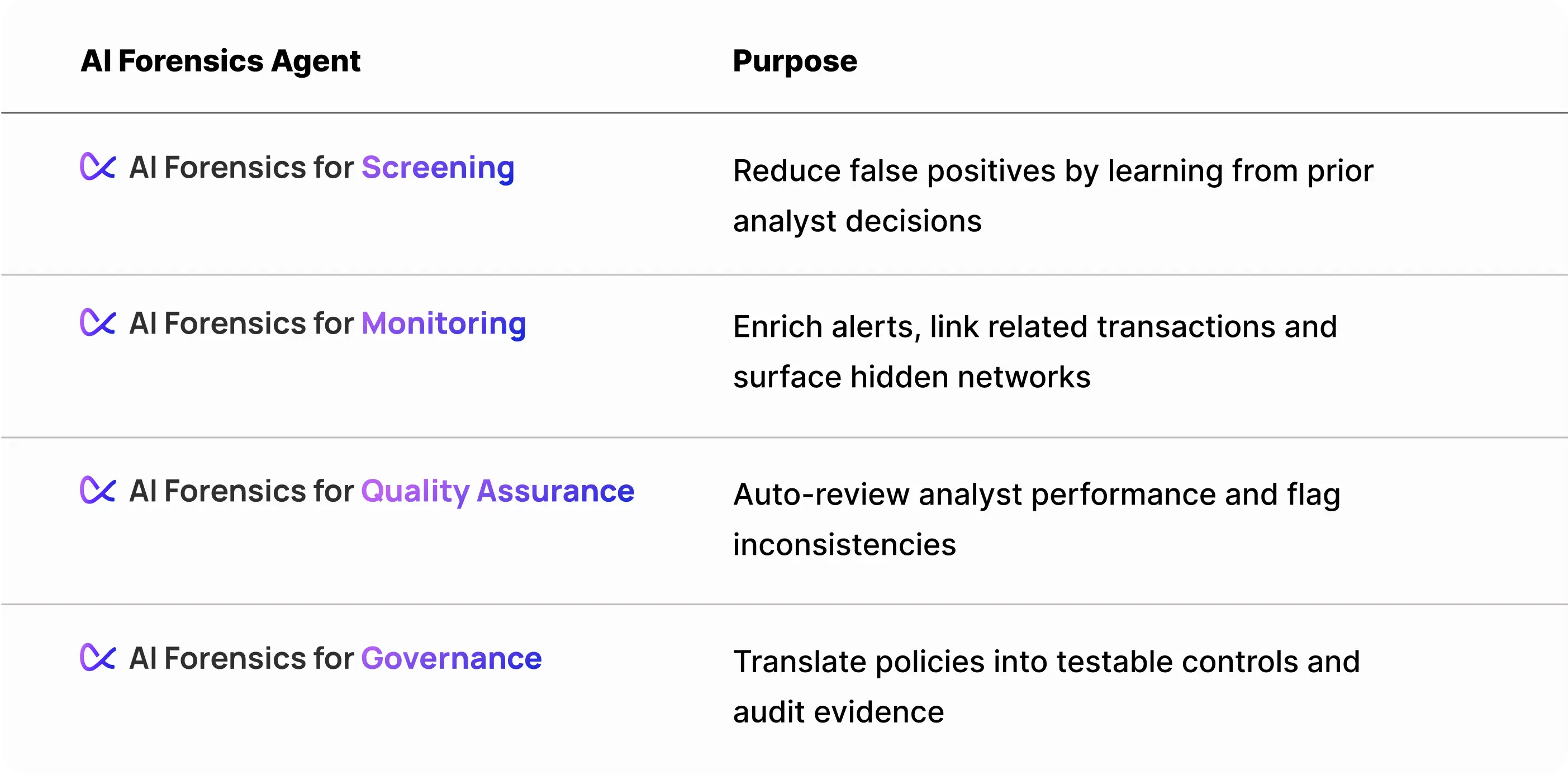 This year’s selection committee highlighted Flagright’s AI Forensics module, a family of specialised agents that tackle the most time-consuming AML tasks: